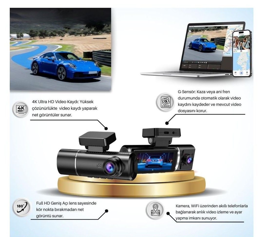 - 4K Ultra HD çözünürlük ile kristal netlikte yol kaydı